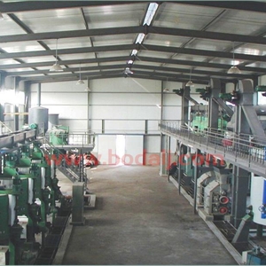 Embryos after cooking are called cooked flakes,crude oil containing slags from presser is pressed into oil settling tank through oil scraper blade,after the slag is removed,the crude oil is sent into oil filter tank,and then it is sent into horizontal screw centrifuge for purification. Pre-pressed cake from oil presser is conveyed into extraction plant by cake collecting scraper and cake scraper and then enters into the following process.