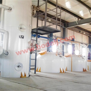 (1)Pump crude oil into refining tank and heat with conduction oil, and the temperature will reach about 70°C -80C after one hour. Add acid or alkali to separate according to the acid value. After one hour's processing and 4-6 hours deposit, then convey soap stock to storage tank.